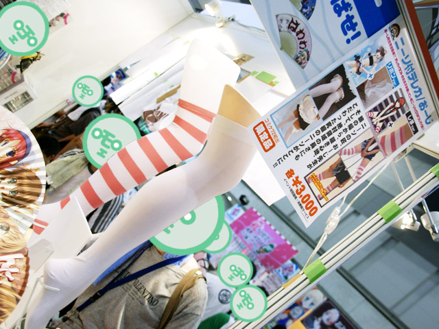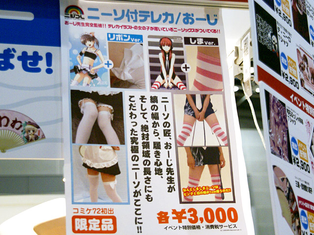 こちらで掲示されていたPOPには「ニーソの匠、おーじ先生が縞の幅から、履き心地。そして、絶対領域の長さにもこだわった究極のニーソがここに!!」と書かれていました。