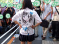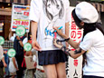 以前、アキバで巨大な美少女画を描く女性がいましたとしてお伝えした、即興で巨大な美少女画を描くペインティング大道芸「路上ライブペインティング」をしていた愛☆まどんなさんが、9月16日にもアキバにこられていて、この日は巨大美少女画ではなく、女体の背中のシャツをキャンパス変わりにイラストを描いていました。