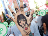 他、愛☆まどんなさんのブログには「身体に(男子はハダカ)絵かかれてもいいよーっ!という威勢のいい方の飛び込み参加、大大大歓迎です!!!!」とも書かれていて、実際飛び込みをしてきた男性の方の腕にイラストを描く光景も。