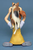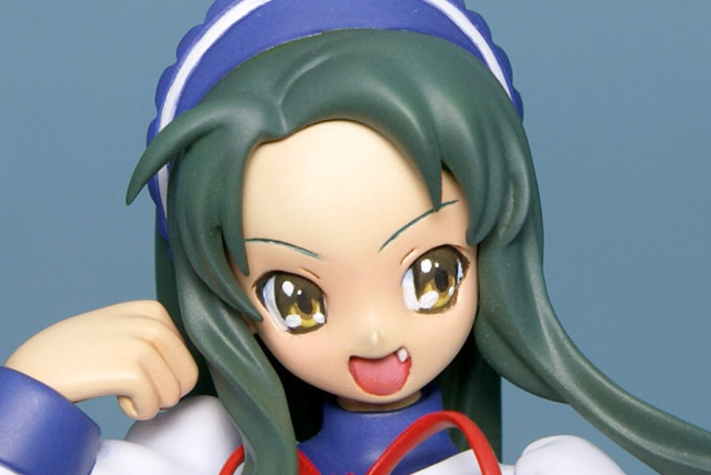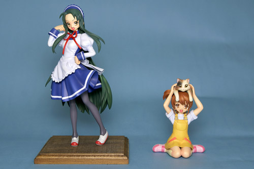 これは、ワンフェス2007夏でも無彩色サンプル展示のあった、「涼宮ハルヒの憂鬱」のキャラ、鶴屋さんとキョンの妹を2体セットにしたもので、「朝比奈みくる バニーガール ver.」(AA)(参考サンプルレビュー)同様、「モデリングディレクターにみすまる☆ましい氏を迎え、製品コンセプトから、原型及び塗装までこだわりのフィギュア化を行いました。また原型製作にあたり、メインキャラのボディバランスや造型指針などの確認用モデルを最初に製作してから取り組まれており、今後のシリーズ展開に備えての入念なモデリングが施されています。」という、トレジャーフィギュアコレクション「涼宮ハルヒの憂鬱」シリーズ第2弾となるもの。