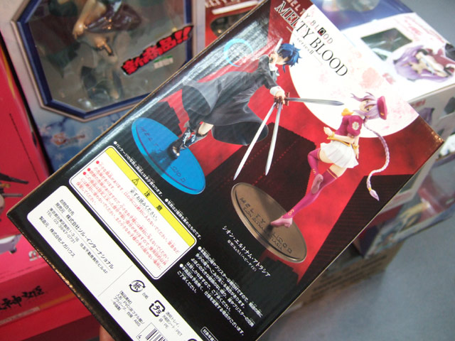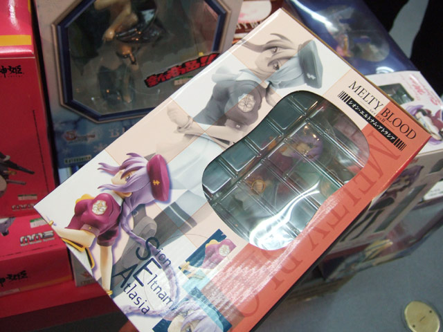 これは、ワンフェス2007夏のメガハウスブースでも展示があり、以前サンプルレビューもお伝えした、MELTY BLOODのキャラ「シオン」を立体化したものです。
