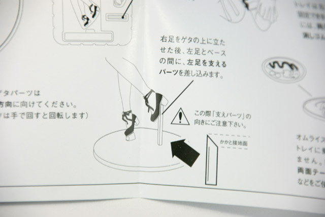 左かかとには専用の「支えパーツ」で傾き防止しています。