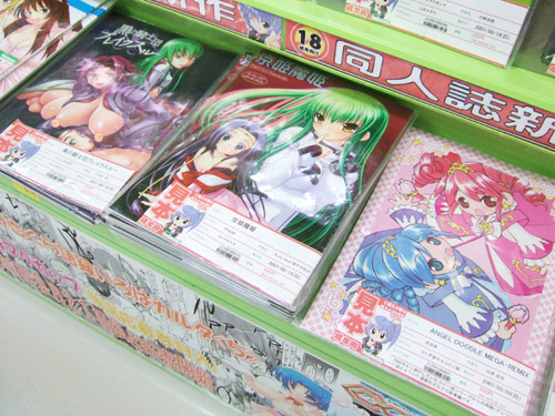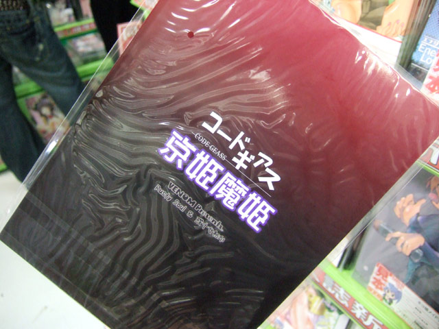 以前、頂点の突起も再現された、コードギアスC.C.同人おっぱいマウスパッドも製作されたサークルVENOMさんの、同じくコミケ72で頒布されたコードギアス同人誌「京姫魔姫」がメロンブックスメッセサンオー3号店などで出ていました。これは、C.C.がぴちゃぴちゃしたり、「こんなに凄いものを持ってたのか!?」だったり、神楽耶に差し込んじゃったりする大人向け同人誌。