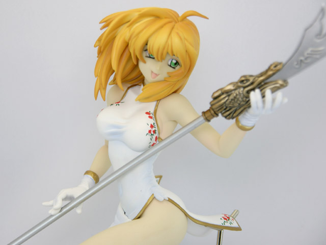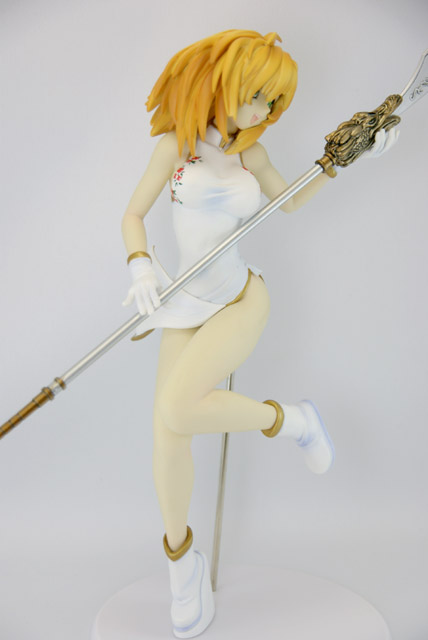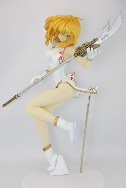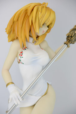 コミックガムの商品説明によると「『一騎当千』フリークの方であれば、鮮烈なイメージとともに記憶しているであろう単行本第1巻収録の伯符のカラーイラスト。そのイメージを立体として”補完”したこちらのフィギュアは、連載当初のあどけない伯符の表情と、時を経て現在のアニメーション、コミックスで成熟した伯符のイメージを橋渡しするような出来映えとなっている。チャイナドレスに包まれたはち切れそうなボディも、アンバランスさは全く感じさせない。塩崎先生のイラストの持つ躍動感を維持しつつ、こんな難しいポーズにおいても、角度によって様々な印象を与える造形ワークは見事の一言である。加えて、原型段階ではチャイナドレス前側部分が着脱可能な仕様となっているところも注目だ。こちらの取り外しによってイラストでは見ることが出来ない下着全面をご開帳する事が可能になっている。矛の龍の細かな意匠、純白のチャイナドレスのバストのたわみ、ゴールドで縁取られたディテール、そしてたおやかになびくオレンジの髪、あどけなさを湛えた表情と加えて、それら全てが孫策伯符というキャラクターのイメージを”補完”する事に一役買ってくれるはずだ。コミックからの『一騎当千』フリークはもちろん、アニメから伯符ファンになった方々まで、マスト・バイの逸品と言えよう。」と紹介されています。