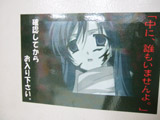 以前コロニーレーザー発射場だったことをお伝えした、ゲームシティ5Fの男子トイレの扉に、新たにアニメ「School Days」の地上波で放送休止となった最終話の、ヤンデレ属性キャラNo.1にも輝いた言葉様出演の1シーンを用いたPOPが追加されていました。そのPOPによると『「中に、誰もいませんよ。」確認してからお入り下さい。』とのこと。メッセ3号店では「Nice boat.
