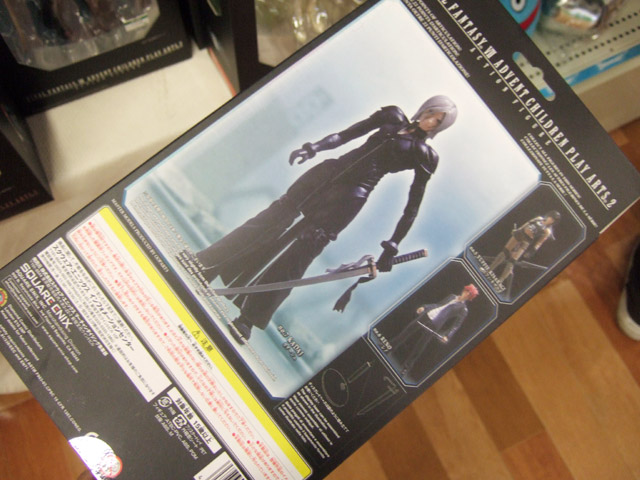 これは、2005年8月に発売された、「セフィロス」(参考レビュー)「ティファ」、「ヴィンセント」(参考レビュー)の3体に続く、DVD「FINAL FANTASY VII ADVENT CHILDREN」のキャラをコトブキヤ製造、スクエニ販売の可動フィギュア「プレイアーツシリーズ」にした第2弾となるものです。