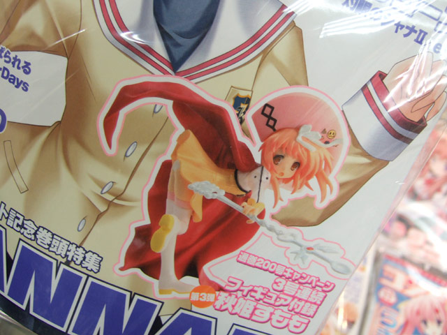 いつもは30日発売ですが、9月は30日は日曜日なので、1日早い9月29日に「電撃G’sマガジン 2007年11月号」(AA)が発売されました。今回、9月号(AA)のクドリャフカ10月号(AA)の来々谷唯湖に続く、電撃G’sマガジン通巻200号達成記念付属フィギュア最後の第3弾となる、秋姫すももフィギュアが付属しています。思いっきり前かがみポーズなので、後ろからはパンツ丸見え