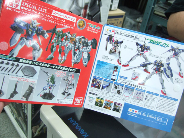 バンダイ「HCM-Pro44 ガンダムエクシア」(AA)のサンプル展示はキャラシティにて開始しています。これは、以前お伝えしたファーストグレード同様、2007年10月から放送開始予定の「機動戦士ガンダム00」の主人公「刹那・F・セイエイ」の搭乗機「ガンダム エクシア」をHCM-Proにしたもの。初回限定特典として、HCM-Pro用台座「スペシャルブロックベース」が付属するみたい。