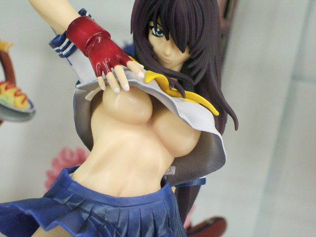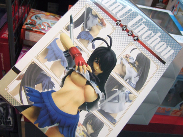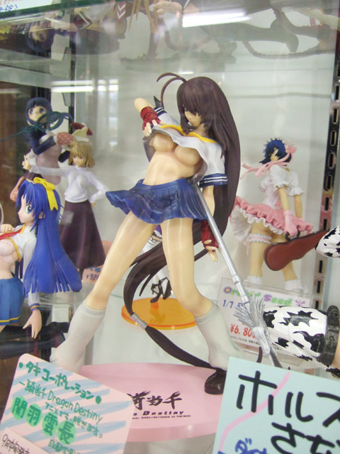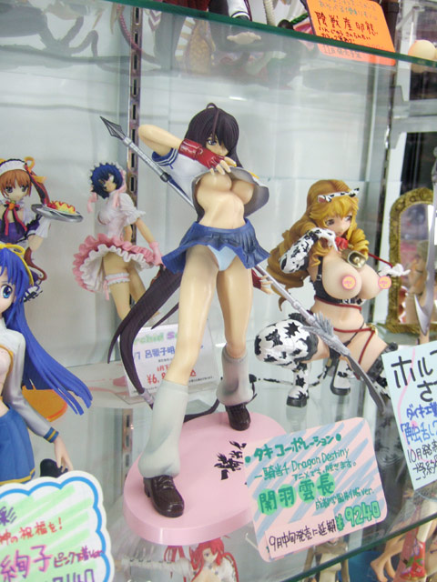 これは、アニメ「一騎当千 Dragon Destiny」のキャラ「関羽雲長」を、以前パンツまでキャストオフされほぼ裸で展示されてたことをお伝えしたように、成都学園制服をほぼ全裸までキャストオフ可能なフィギュアにしたもので、タキ・コーポレーションの商品説明によると「アニメ『一騎当千 Dragon Destiny』のキャラから関羽雲長が立体化されました。制服は着脱が可能なうえ、ダメージver.の着せ替えパーツが同梱されています。」と紹介されています。