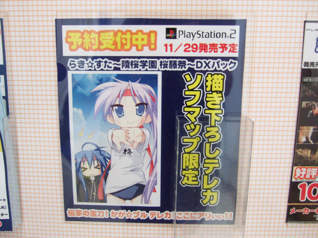 また、こちらも以前ゲーマーズショップ特典テレカイラストをお伝えしたことのある、PS2「らき☆すた 〜陵桜学園 桜藤祭〜 DXパック」(AA)のソフマップショップ特典テレカの絵柄も「伝家の宝刀!かが☆ブルテレカ!ここにアリぃぃ!!」として公開されていました。