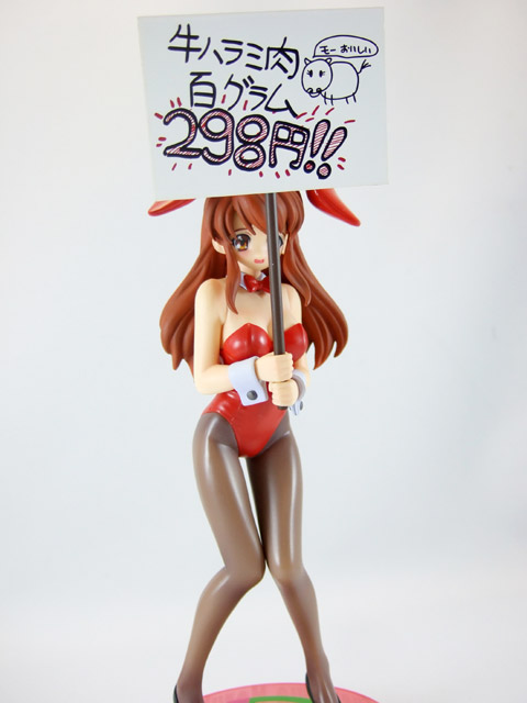 これは、以前サンプルもお伝えした、商品説明によると「製品はモデリングディレクターにみすまる☆ましい氏を迎え、製品コンセプトから、原型及び塗装までこだわりのフィギュア化を行いました。また原型製作にあたり、メインキャラのボディバランスや造型指針などの確認用モデルを最初に製作してから取り組まれており、今後のシリーズ展開に備えての入念なモデリングが施されています。」という、ウェーブの「涼宮ハルヒの憂鬱」フィギュアかシリーズの第1弾で、「朝比奈みくる」をバニーガール姿で立体化したものです。