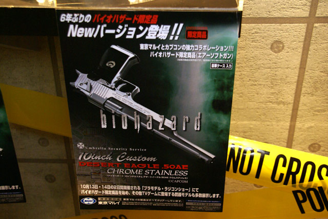 これは、POPによると「6年ぶりのバイオハザード限定品 Newバージョン登場!!」という限定エアガンで、10月13日・14日に開催予定のプラモデル・ラジコンショーでも展示されるみたいです。