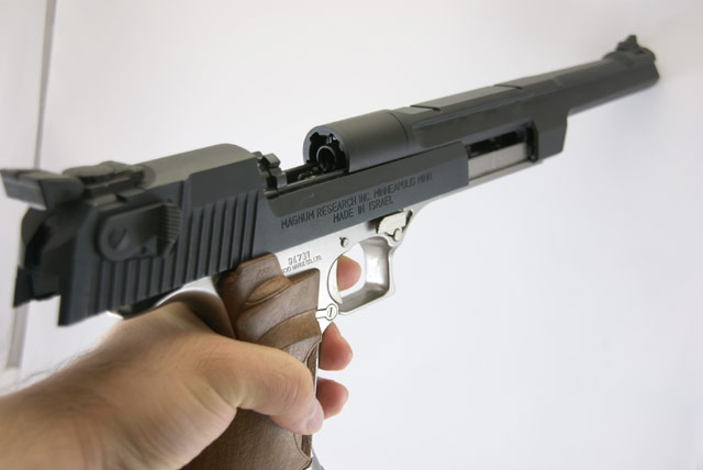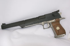 こちらは以前発売された、「10インチカスタム デザートイーグル50AE バイオハザード2バージョン」のスライドをアルミフレームに変えたもの。