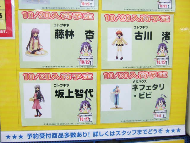 ソフマップアミューズメント館の4Fエレベーター付近で、10月の美少女フィギュア入荷予定日が公開開始されています。
