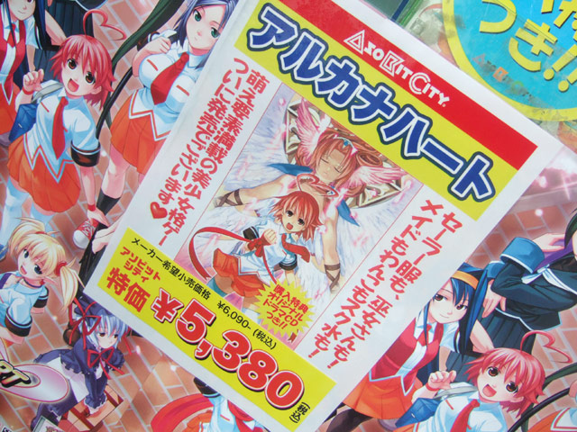 10月11日、PS2「アルカナハート」(AA)が発売されました。これは、ゲームシティのPOPによると「セーラー服も、巫女さんも!メイドもわんこもスク水も!萌え要素満載の美少女格ゲー」という、悠紀エンタープライズのアーケードの2D対戦格闘ゲームで、ホビージャパン通販限定フィギュアもあった「アルカナハート」をPS2に移植したものです。他、10月11日のよろずネタを。
