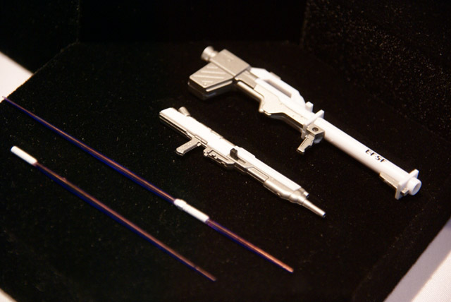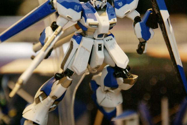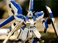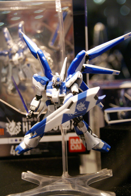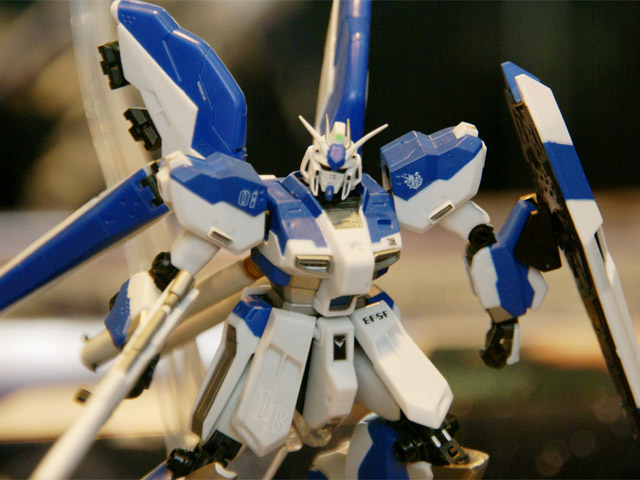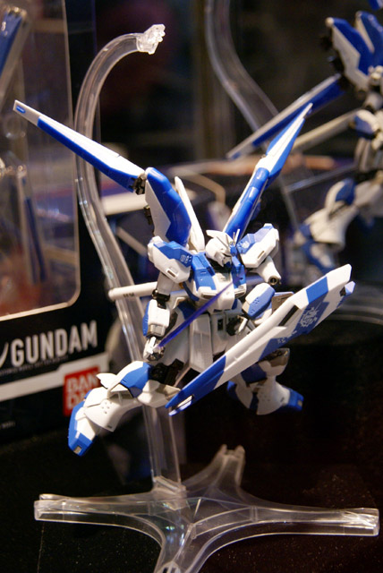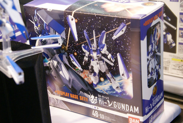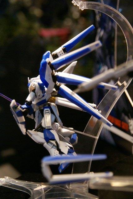 10月11日〜14日の4日間開催される、2007 プラモデル・ラジコンショーのバンダイブースでは「HCM-Pro47 Hi-ν ガンダム」(AA)のサンプルが展示されていました。これは、2007年2月に発売となった「1/100 MG Hi-ν ガンダム」(AA)(参考サンプル)同様、出淵裕氏による公式設定画を元にハイコンにしたもの。ファンネルを設置できる台座も付属するみたい。