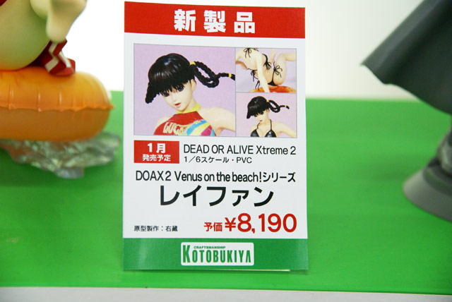 10月11日〜14日の4日間開催される、2007 プラモデル・ラジコンショーのコトブキヤブースでは、「デッド オア アライブ エクストリーム2 DOAX2 the beach!レイファン」のサンプルが展示されていました。これは、サンプルレビューをお伝えした、あやね(AA)同様の水着が取り替えられる「魔女っこシステム」搭載のコトブキヤ「DOAX2 the beach!シリーズ」の第2弾。