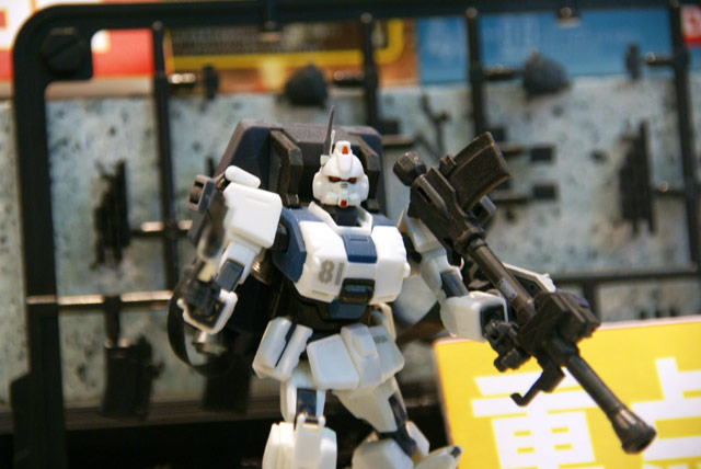 10月11日〜14日の4日間開催される、2007 プラモデル・ラジコンショーのバンダイブースでは、「HCM-Pro46-00 ガンダムEz8」(AA)のサンプルが展示されていました。これは、OVA「機動戦士ガンダム 第08MS小隊」の劇中に登場した陸戦型ガンダムに大規模な改修を施した改良機「ガンダムExtra-Zero-8(08小隊特別機/通称Ez8)」をハイコンにしたものです。