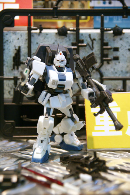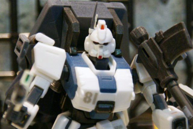 Ez8は、Wikipediaによると「アプサラスIIとの交戦により大破した極東方面軍コジマ大隊第08MS小隊所属のシロー・アマダ少尉の搭乗する陸戦型ガンダムに大規模な改修を施したものである。そもそも陸戦型ガンダム自体が品質検査に適合しなかった余剰パーツで建造された機体であったため、戦線での補修用パーツの供給は十分でなく、改修には陸戦型ジムのパーツや現地調達の各種ジャンクパーツ等が利用された。本機はそのような現地改修機の一つであり、その際、破損部の補修だけでなく、陸戦型ガンダムの運用により浮上した問題点をフィードバックし固定武装の変更も行われている。なお、Ez8は「Extra-Zero-8」(08小隊特別機)の略である。〜携行武装は陸戦型ガンダムの改修機ということもあり、同機の兵装はすべて使用可能であった。」という機体。