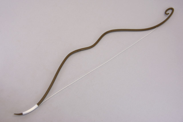 左手に持つ弓は、手のひらと左腕上腕のダボに差し込んで固定します。
