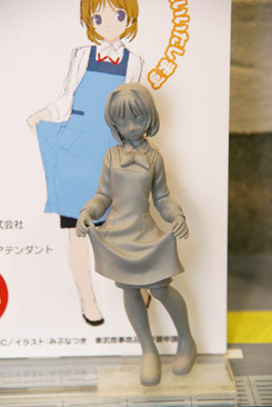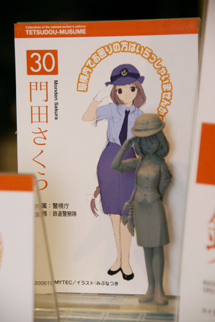 10月11日〜14日の4日間開催された、2007 プラモデル・ラジコンショーのトミーテックブースでは、「鉄道むすめ 鉄道制服コレクション 第5弾 コレクションフィギュア」(AM)の無彩色サンプルが展示されていました。これは、みぶなつき氏デザインのオリジナルキャラクターが、実在の交通事業の制服を着たトレーディングフィギュアシリーズ「鉄道むすめ」の第5弾となるものです。