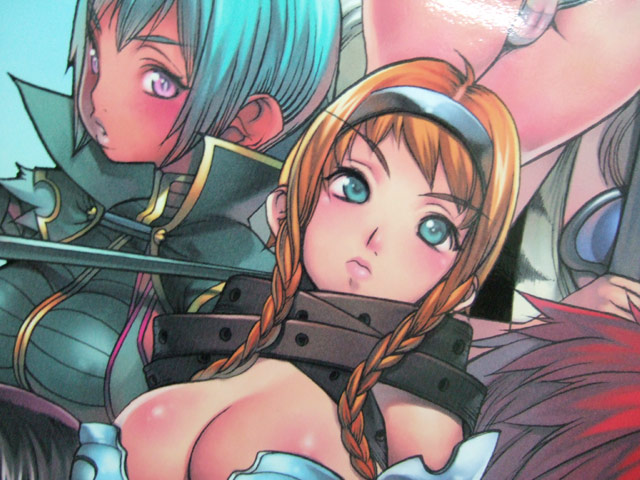 関連:クイーンズブレイド – 公式/メナスの具がやばい表紙の、コミケ71限定「クイーンズブレイドイラスト&原画集 2006冬」/クイーンズブレイド F.S.氏イラストキャラ「メローナ」と「クローデット」の告知POP