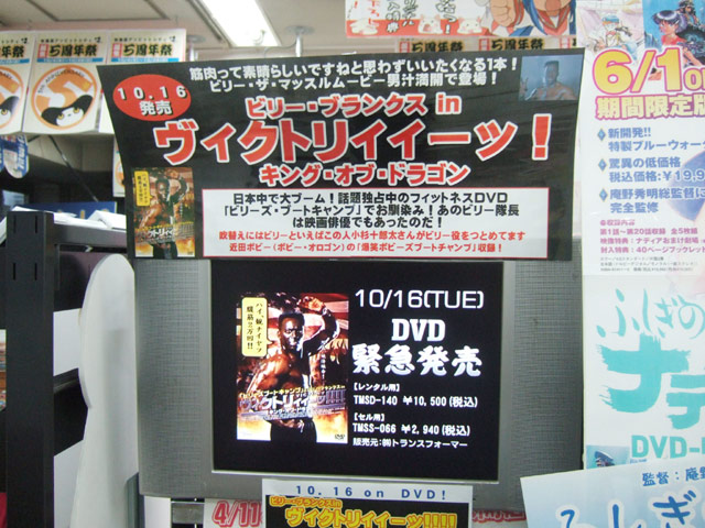ゲームシティのPOPでは「筋肉って素晴らしいですねと思わずいいたくなる1本!ビリー・ザ・マッスルムービー男汁満開で登場!日本中で大ブーム!話題独占中のフィットネスDVD「ビリーズ・ブートキャンプ」でお馴染み!あのビリー隊長は映画俳優でもあったのだ!吹替えにはビリーといえばこの人小杉十太郎さんがビリー役をつとめてます 近田ボビー(ボビー・オロゴン)の「爆笑ボビーズブートチャンプ」収録!」と紹介されています。