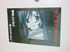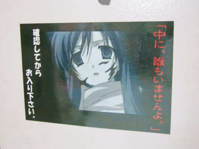 ゲームシティ5Fトイレに言葉様POP 「中に、誰もいませんよ。」