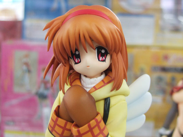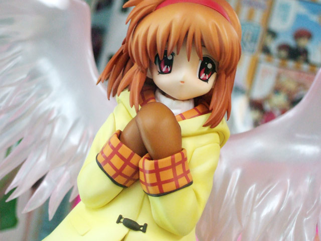 これは、ドリパ東京2007春等でサンプル展示もあった、KeyのPCゲーム「Kanon」のキャラ「月宮あゆ」を立体化したものでマックスファクトリーの商品説明によると「大人気PCゲーム『Kanon』より、物語の鍵となるヒロイン「月宮あゆ」が登場です。普段の明るく元気な印象とは一味違う、物憂げではかないイメージで立体化。より作品世界に踏み込んだ表現を目指しました。背中の付け替えパーツによって、オープニングムービーをモチーフにした「翼Ver.」とファンにはおなじみの「羽付きリュックVer.」の2種類が楽しめます。幻想的な雰囲気を感じてみてください。」と紹介されています。