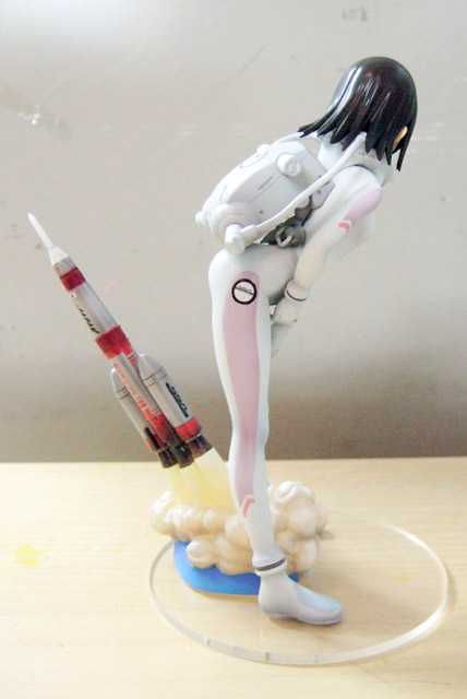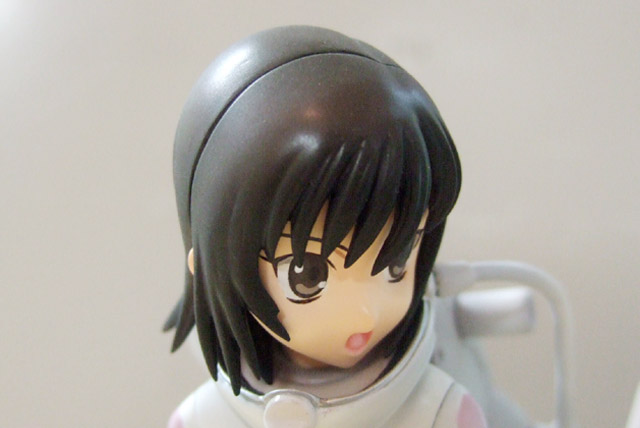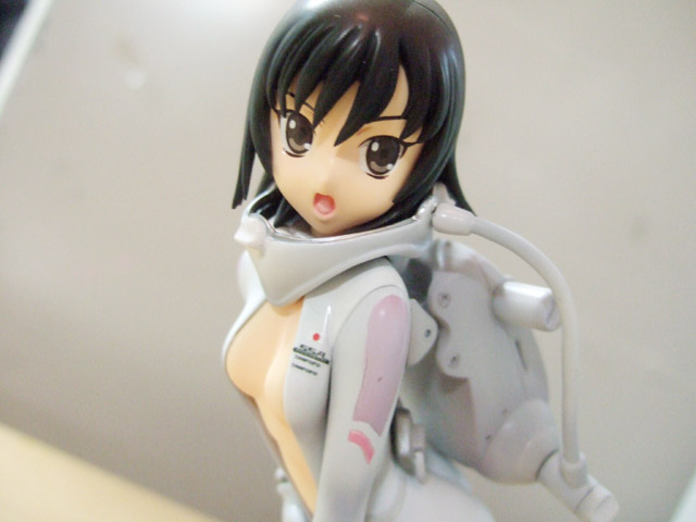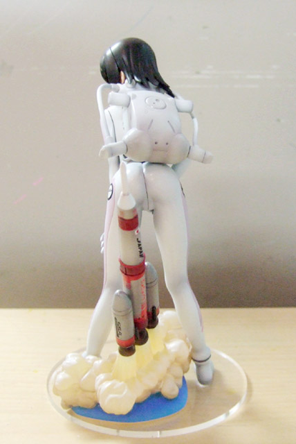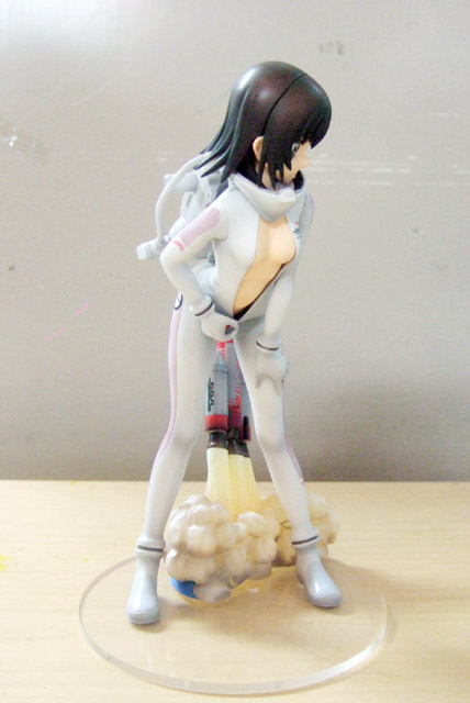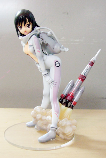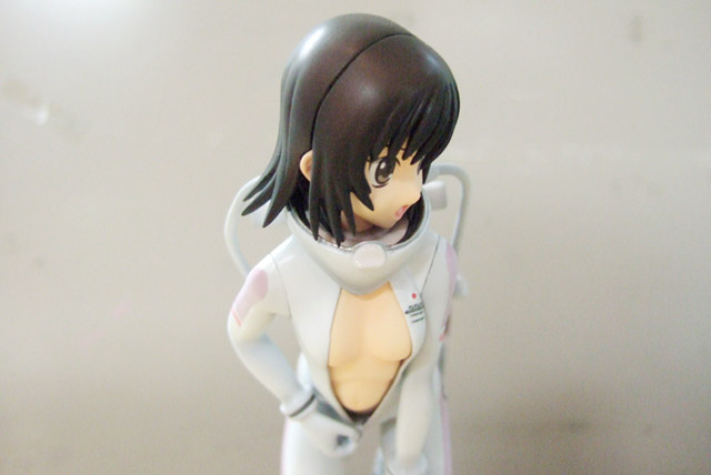 これは、ワンフェス2007夏等でもサンプル展示のあった、アニメ「ロケットガール」のキャラ「森田ゆかり」を、厚さ2mmの宇宙服という「スキンタイトスーツ」姿で立体化したもので、ハピネットロビンの商品説明によると『厚さ2mmの宇宙服、スキンタイトスーツに身を包んだ女子高生「森田ゆかり」がクロノ∞ゲートに登場!』と紹介されています。
