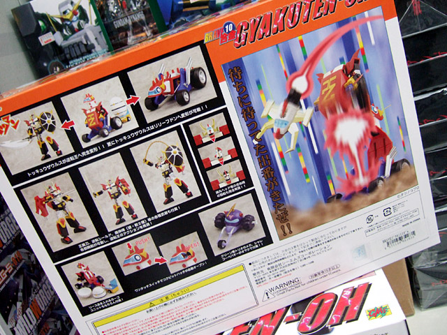 全体的にメタリックパーツを多く使用し、塗装も細かくチェックすると微妙に違っています。「逆転イッパツマン」より「逆転王」がよりリアルなメタリックカラー版になって登場!トッキュウザウルスから逆転王への変形、そして弾丸ヘッド号との合体を完全再現!武器やオプションパーツ、オマケも豊富に付属!さらに、トッキュウザウルスのキャノピーにはクリアパーツを使用!コックピットにはランちゃん、ハル坊、2-3が乗っているぞ!さらにトッキュウザウルスはリリーフドンに変形可能!カーゴユニットも胴体内に完全収納!付属品としてコックピット乗り込み用の階段、魔伸棒、シャレコウベバギーなど。