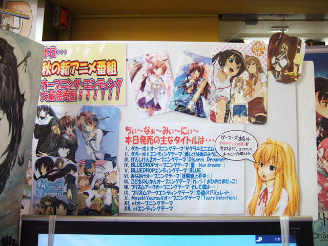 なお、すべてのCDは基本的にゲームシティ、ゲーマーズ本店、ソフマップアミューズメント館、ソフマップ秋葉原PCゲーム・アニメ館、とらのあな本店等のCD、DVD取扱店で入荷確認できました。
