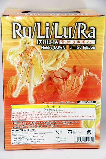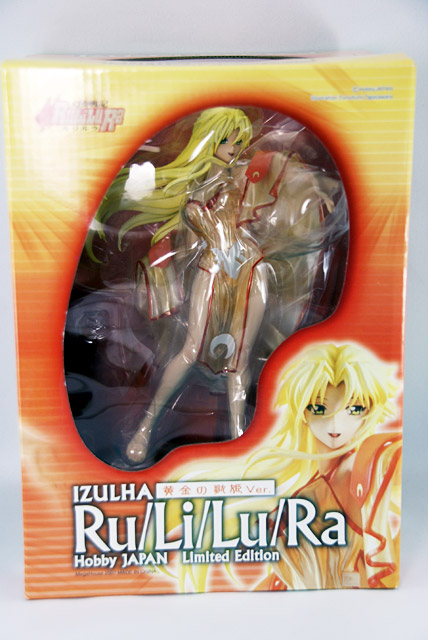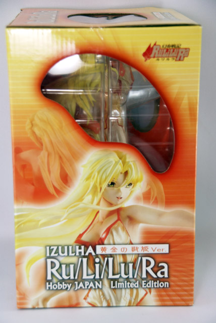 ホビージャパン誌上通販限定「幻奏戦記ルリルラ イズルハ 黄金の歌姫Ver.」のパッケ。メガハウス製造らしい、エクセレントモデル風のデザインでした。