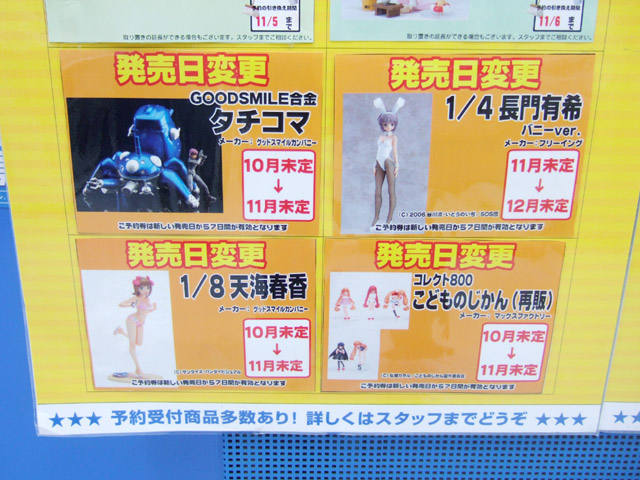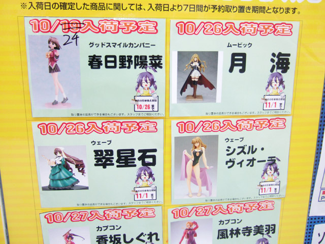 ソフマップアミューズメント館4Fに掲示されている、新作フィギュア入荷予定表が更新されていました。
