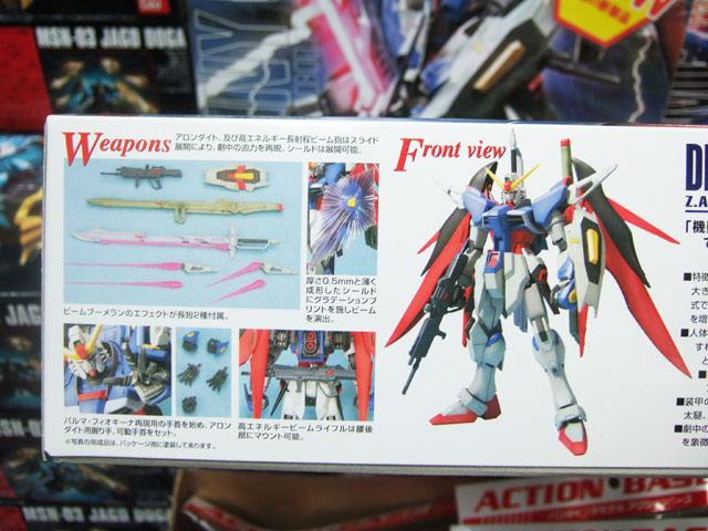 バンダイ「MG デスティニーガンダム 通常版」(AA)のパッケ表と側面の解説。