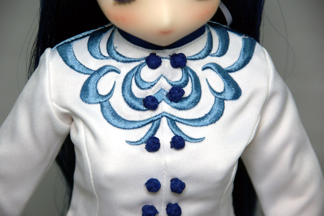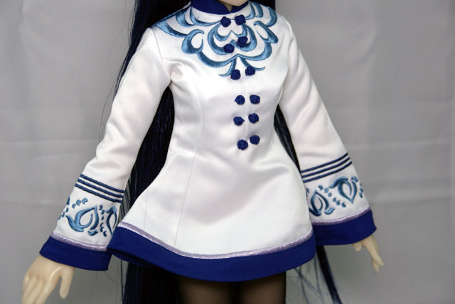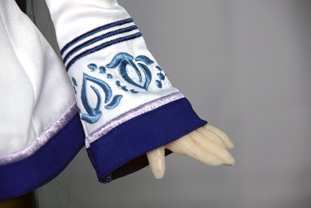 服は桃歌台学園制服を再現したもので、胸元や腕の部分の細かい刺繍などもプリントではなく、きちんと実際に刺繍されています。