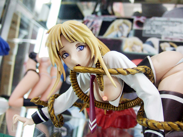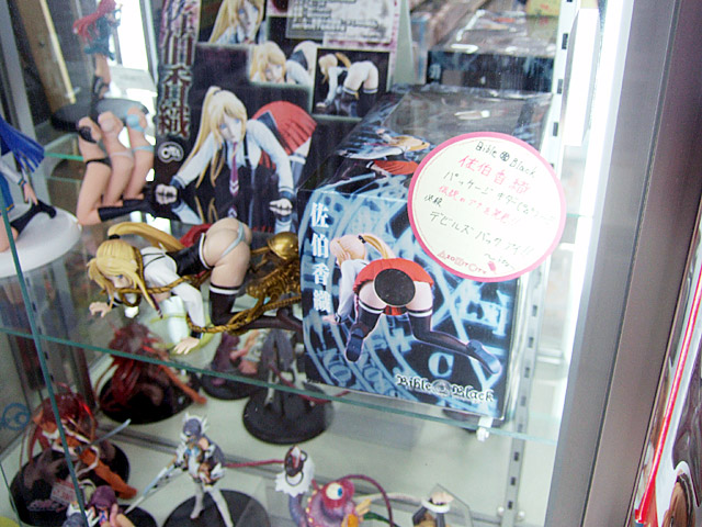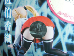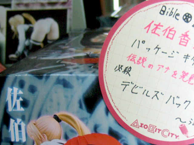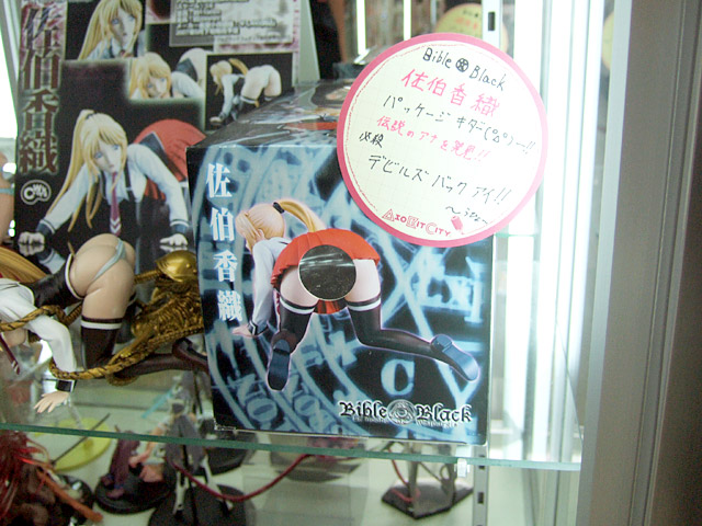 以前、PVCサンプルレビューも撮影させていただいたキャラシティのC-Works「バイブルブラック 佐伯香織」(AA)のサンプル展示にパッケが追加されていました。そのパッケの側面には、サンプル画像のある一部分にだけ窓がついていて、キャラシティのPOPでは、「パッケージキダー( ゚△゚)ー!! 伝説のアナを発見!! 必殺 デビルズバックアイ!!〜うひょ〜」とのことです。
