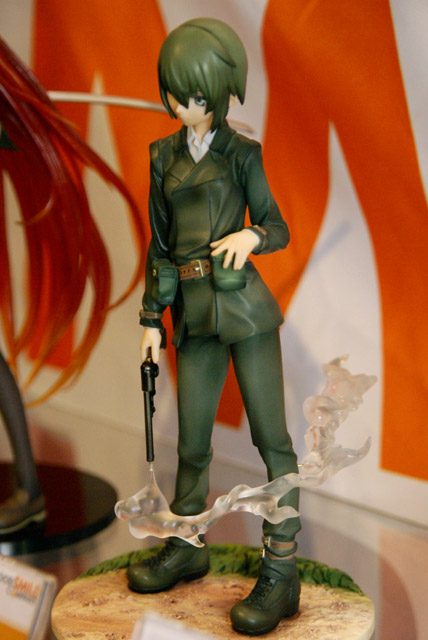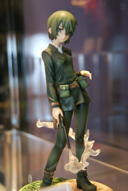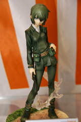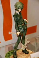 これは、ワンフェス2007夏のWHF6ブースでもサンプル展示のあった、劇場版アニメも公開された小説「キノの旅」の主人公「キノ」を立体化したもので、グッスマの商品説明によると「だからボクは、旅をやめない。2000年より続く電撃文庫の大ヒットシリーズ『キノの旅』より、言葉を話す二輪車エルメスに乗って世界中を旅する主人公「キノ」が登場です。短髪で自分をボクと呼ぶけど、実は女の子。自然体のまま、愛用パースエイダー「カノン」を構えたポージング。落ち着いた造詣からは、作品の世界観があふれ出します。銃口よりたなびく煙はクリアパーツで再現するなど、細部にまでこだわった1体に仕上がりました。」と紹介されています。