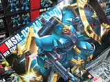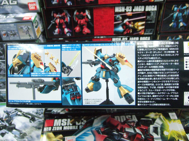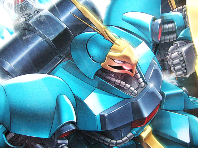 バンダイ「HGUC ヤクト・ドーガ(ギュネイ・ガス専用機)」(AA)のパッケ表と側面の解説。