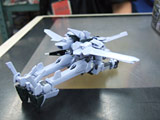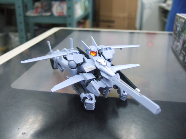 頭部は変形機構を取り入れ、上下にずらすことで、変形時の飛行フォルムを再現。ライフルは機体前方で変形時に腹部に格納を再現。ライフル、シールドは左右の手、腕に取り付け可。バックパック、腰部にある羽は折りたたみ機構を再現。付属武装:ライフル×1(両手取り付け可能)、シールド(両腕取り付け可能) ×2、ビームサーベル×1(ビーム付き)
