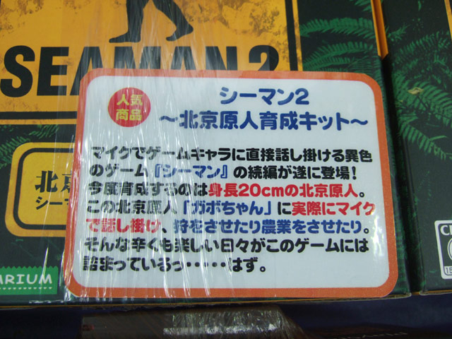 長らくお待たせしておりましたPlayStation2用ゲームソフト「シーマン2 〜北京原人育成キット〜」ですが、いよいよ2007年10月18日に発売することが決定しました。それに合わせて8月1日よりキャンペーン実施店でご予約頂いたお客様には予約特典CD「シーマン2 〜北京原人育成キット〜 “The History of Life”」をプレゼントする予約キャンペーンを実施します。本ソフトは、身長20cmの北京原人を四方海に囲まれた孤島で育成する環境一式を模倣した「育成キット」です。この島で生活する北京原人の飼い主であるプレイヤーは、“シーマイク・コントローラ”を使用して原人とコミュニケーションを図りながら、餌を与えたり、言葉を教えたり、狩の方法を教えたりして世話をします。本育成キットの原人は、みな必死に生きようとします。例えあなたが少しナマケモノの育成者だとしても、彼らは生きるために何かを要求し続け、そして訴えかけてきます。あなたの手をいろいろとわずらわせるでしょうが、その過程を通して、テレビゲームでは体験したことのない奇妙な連帯感が芽生えてくるでしょう。