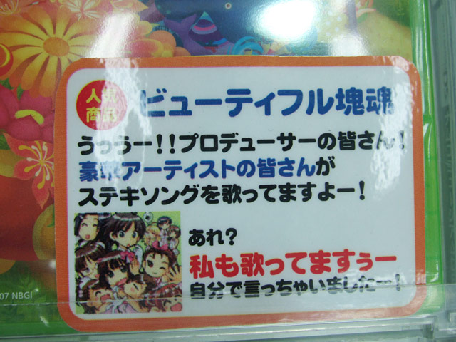 また、ソフマップアミューズメント館のPOPで「うっうー!!プロデューサーの皆さん!豪華アーティストの皆さんがステキソングを歌ってますよー!あれ?私も歌ってますぅー自分で言っちゃいましたー!」とかかれているように、アイマスのキャラの曲が入っているみたいです。