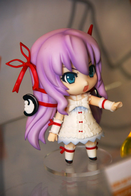 10月14日に開催された、ドリームパーティ東京2007秋のグッドスマイルカンパニーブースでは、グッドスマイルカンパニー「斬魔大聖デモンベイン ねんどろいど アル・アジフ」(AA)のサンプルが展示されていました。これは、ニトロプラス「デモンベイン」のキャラ「アル・アジフ」をねんどろいどにしたものです。クリア成型で作られた使い魔のダンセイニも付属するみたいです。