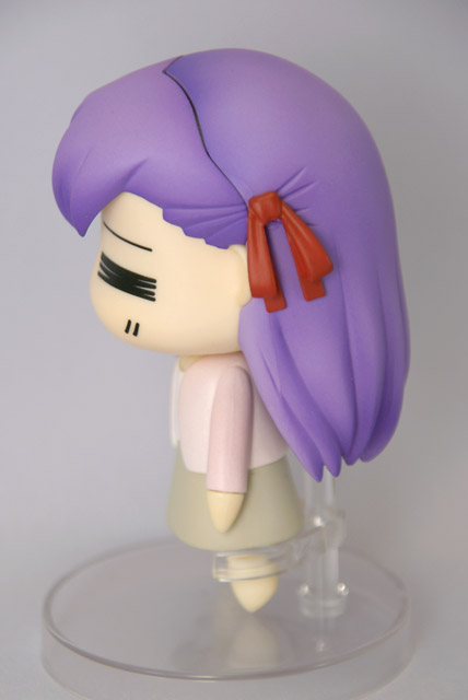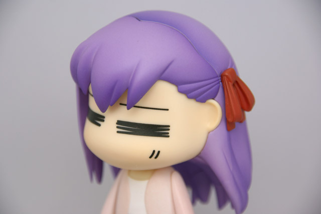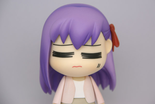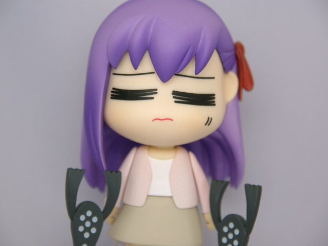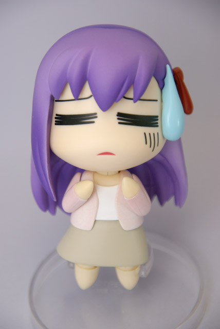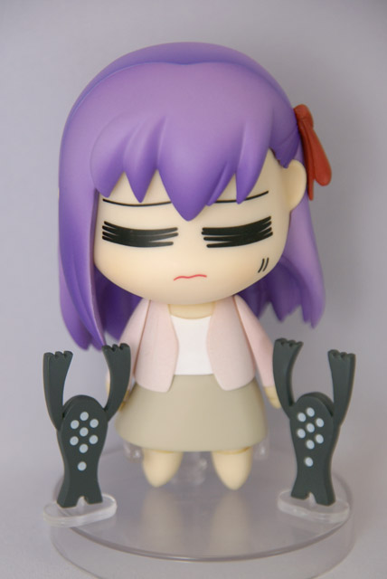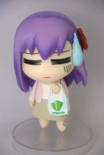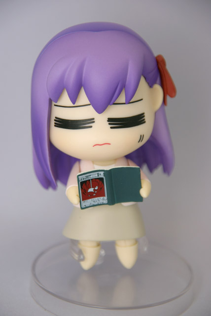 これは、宮沢模型展示会2007年春等でサンプル展示もあり、とらのあな本店では「カワイサあまって、黒さ百倍」というPOPもあった、へたれセイバー(参考レビュー)、やさぐれ凛(発売記事)に続く、つくりものじ氏イラストのディフォルメFateキャラをねんどろいどにした第3弾となるもので、グッスマの商品説明によると「つくりものじ氏が描く、『Fate』のディフォルメキャラクターのねんどろいどシリーズ。続いては「間桐桜」が「へたれ桜」となって登場です。ユルく可愛いイラストをそのままに立体化!顔替えパーツは「困り顔」と「あせり顔」の2種。大きな汗の粒も見事に再現。買い物袋に使い魔、さらにおなじみの暗殺帳と付属パーツもバリエーションに富んだものばかり。」と紹介されています。