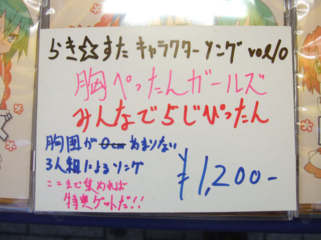 ゲーマーズ本店のPOPには「胸囲が0cmあまりない 3人組によるソング」とかかれていました。