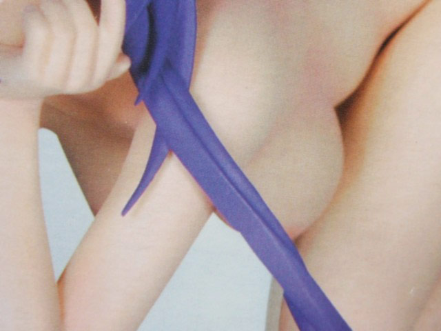 これは、ワンフェス2007夏のグリフォンブースでサンプル展示もあった、2005年5月に発売された、旧一騎当千のDVD裏ジャケットイラストを立体化した「DVD裏ジャケ版」(参考レビュー)、そこからパンツずりさげ、乳丸出しに変更され2006年8月に発売された「スペシャル版」(参考レビュー)に続く第3弾で、ついにパンツ一丁(正確には靴と靴下は履いてますけどねw)となったもので、グリフォンのブランド「アールライン」シリーズのひとつ。