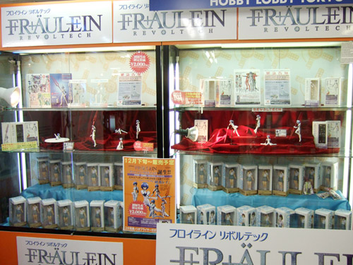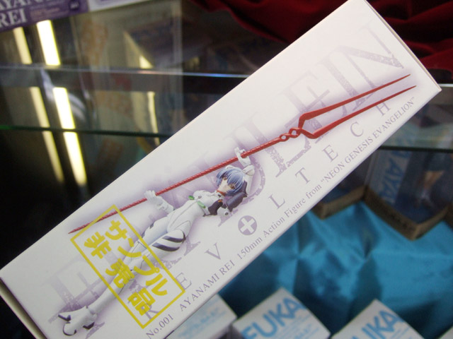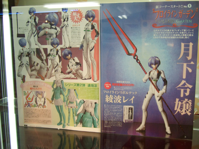 海洋堂ホビーロビーでの「フロイライン リボルテック 001 綾波レイ」(AM)のサンプル展示の様子。