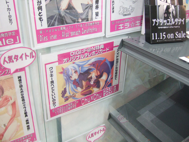 11月22日発売予定の「Chu×Chu ぱらだいす」(AA)ですが、ゲーマーズ本店4Fにて、ゲーマーズ購入特典のテレカイラストが公開されています。