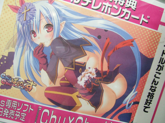 2007年3月に発売されたUNiSONSHIFTのエロゲ「Chu×Chu アイドる」の続編で、11月22日発売予定の「Chu×Chu ぱらだいす」(AA)ですが、ゲーマーズ本店4Fにて、ゲーマーズ購入特典のテレカイラストが公開されています。そのイラストは見た感じはいてなくて、POPには「アイドルがこんな姿でクッキー食べてていいのか?」と書かれていましたw 乳首も透けてました。