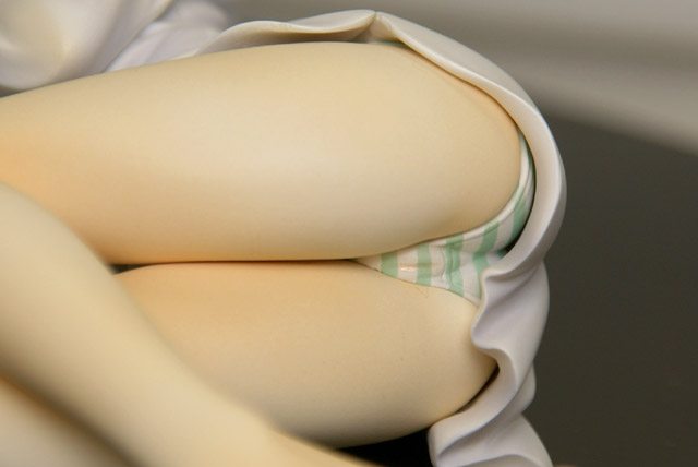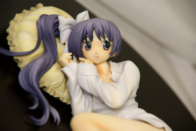 11月4日に開催された、「クレイズ萌え〜ろ祭り」では、「With You 〜みつめていたい〜 伊藤乃絵美 ワイシャツVer.」のガレキ作例が展示されていました。これは、エロゲ「With You 〜みつめていたい〜」のキャラで、主人公の実の妹で攻略キャラでないのに、属性ランキング”いもうと”級1位にもなった「伊藤乃絵美」を、ハダワイ姿で立体化したもの。作例では縞パンでしたw